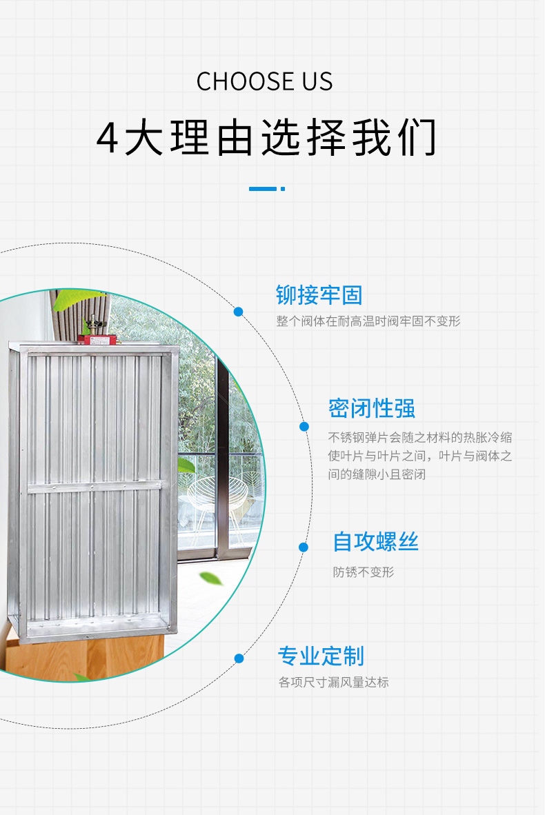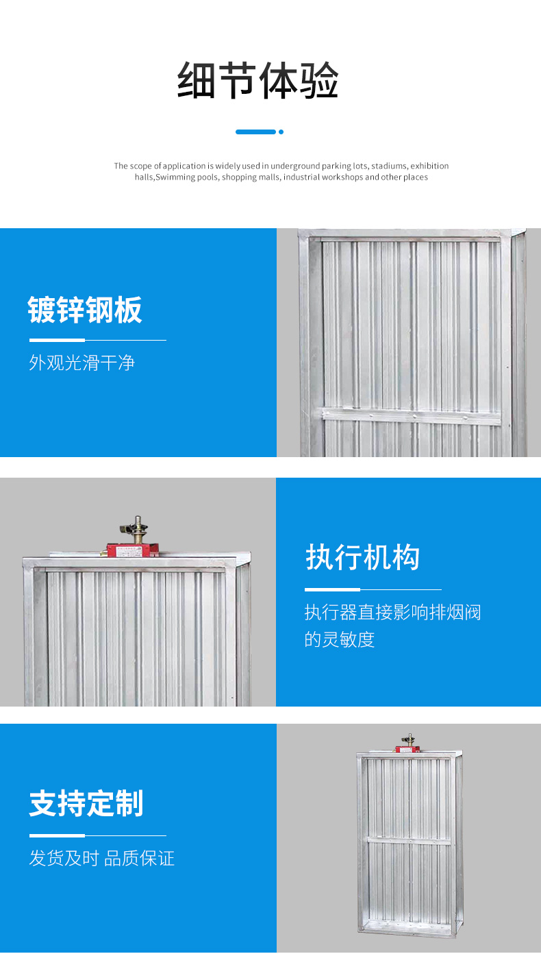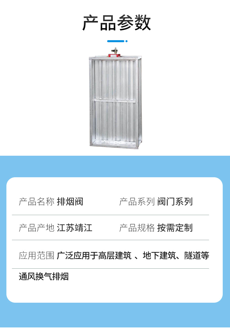 排烟阀安装在机械排烟系统各支管端部(烟气吸入口)处,平时呈关闭状态并满足漏风量要求,火灾或需要排烟时手动和电动打开,起排烟作用的阀门。